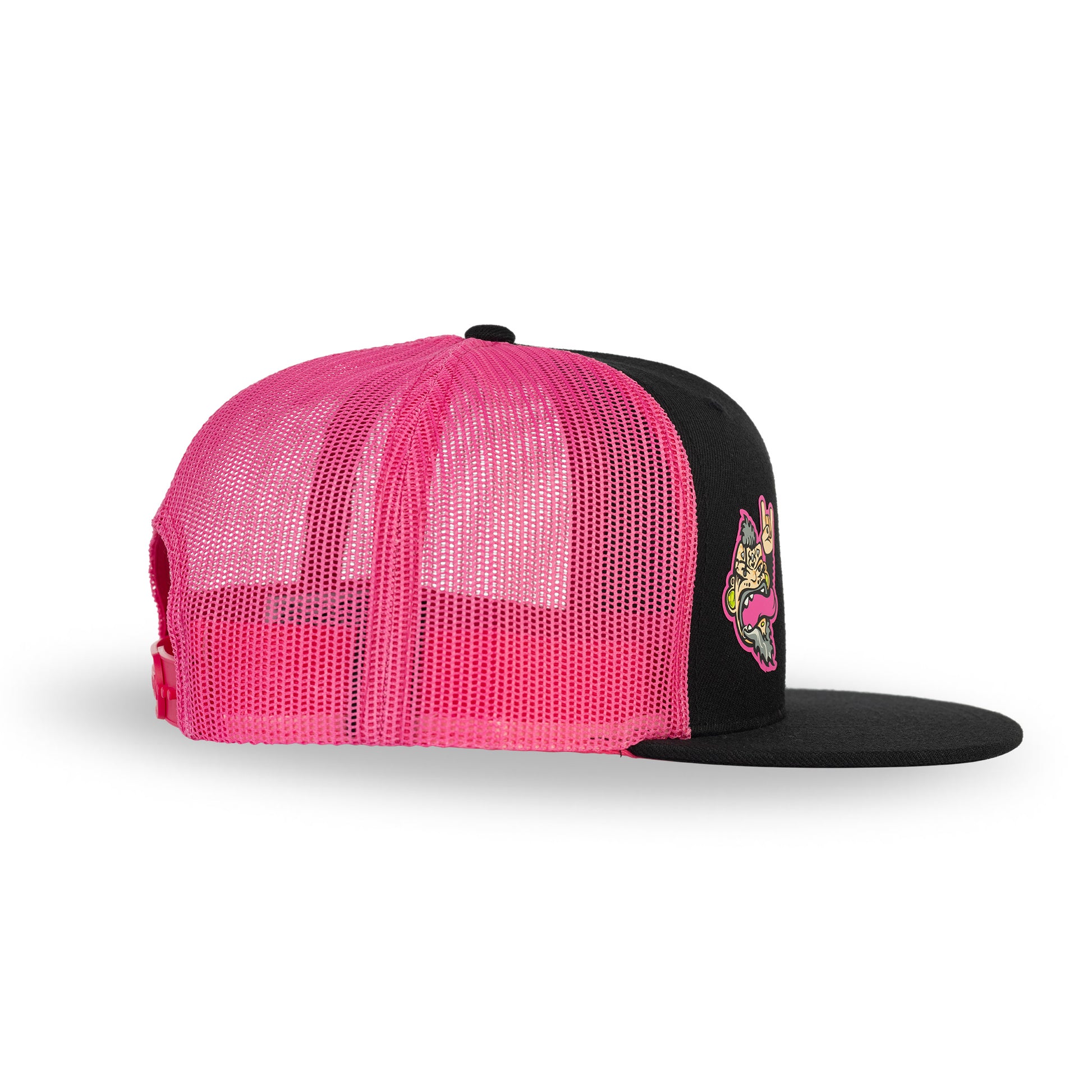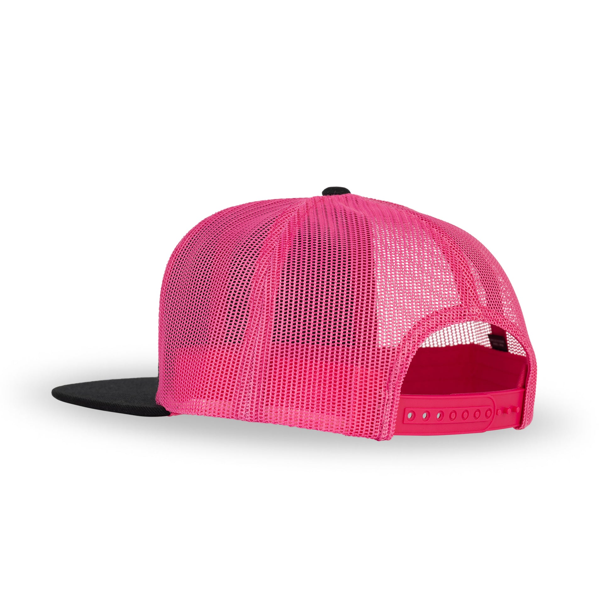 This hat is a Wool Front, Pink Mesh Backed, 6 Panel Custom Trucker Hat, with a Structured Crown, Flat Bill & Classic Snapback. From BBQs to the Shop, the trucker is plenty versatile.