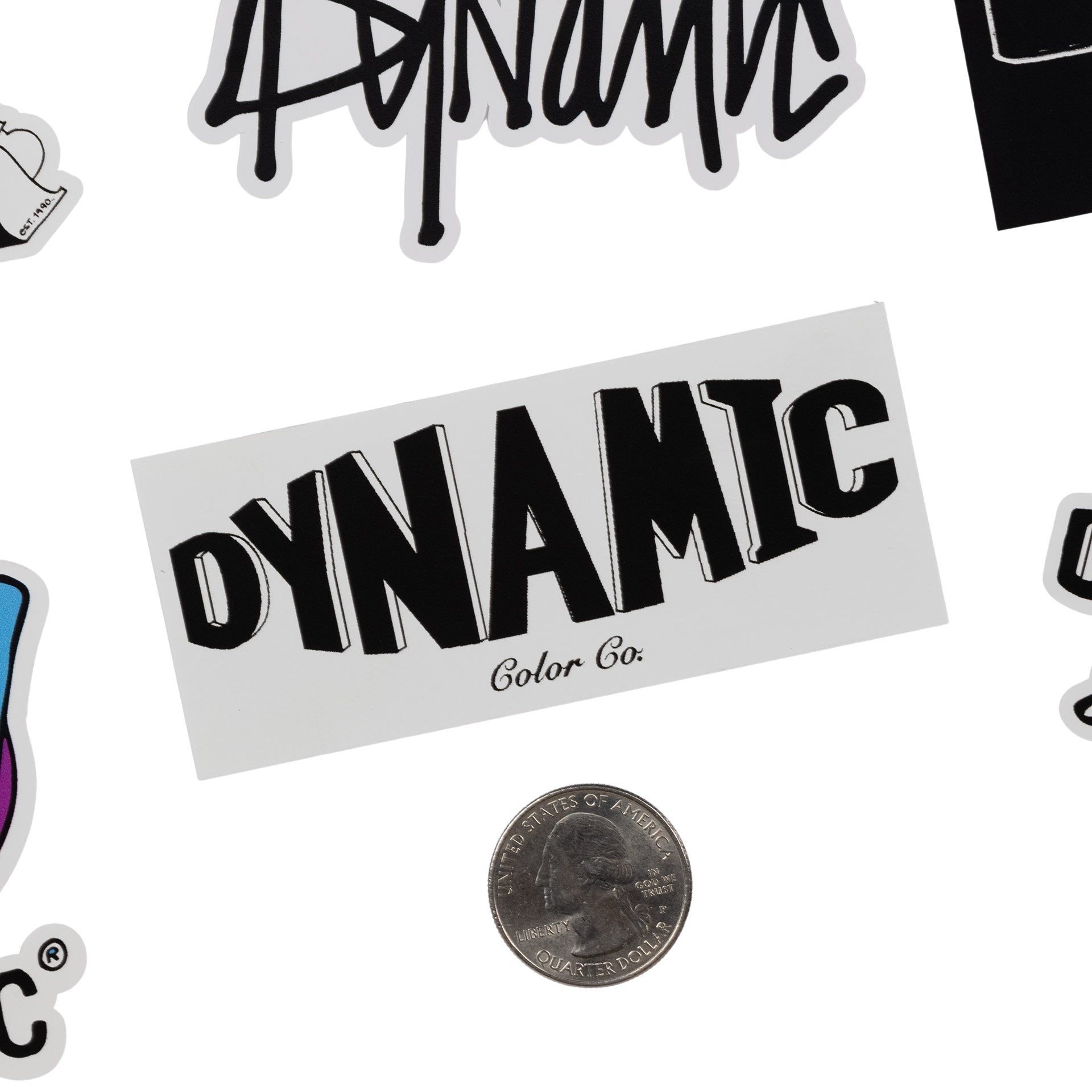 1 All-weather vinyl sticker for tagging your favorite things with Dynamic. This sticker features our original Dynamic logo on a white background. See the sizing chart for scale.