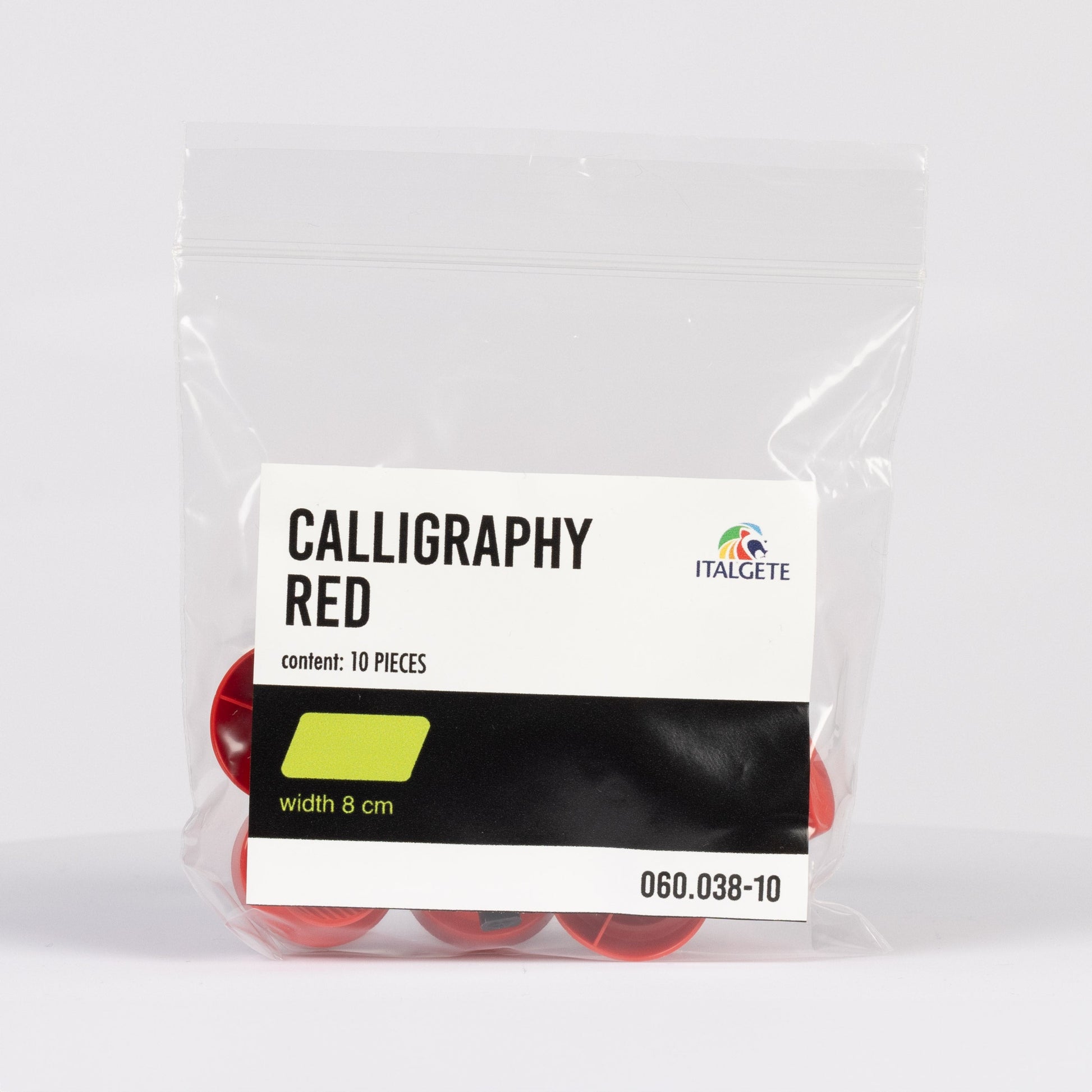 Die Calligraphy Red Cap verfügt über ein Liniensprühmuster anstelle eines Punktes, dessen Winkel durch Drehen des Einsatzes einstellbar ist. Ähnlich wie ein handelsübliches Farbsprühgerät erzeugt sie einen breiten Fächerstrahl, bietet aber mit einer Breite von 8 cm einen breiteren Sprühstrahl als die Black Transversal Cap.