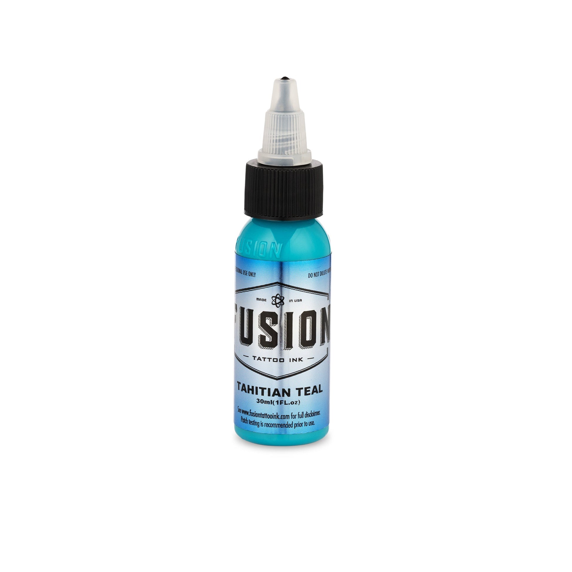 Fusion's Tahitian Teal Tattoo Ink is a professional-grade ink that is smooth and highly pigmented. This 1oz bottle contains rich and vibrant color for intense and long lasting tattoos. An industry leader, Fusion offers a reliable ink known for its high quality and durability.