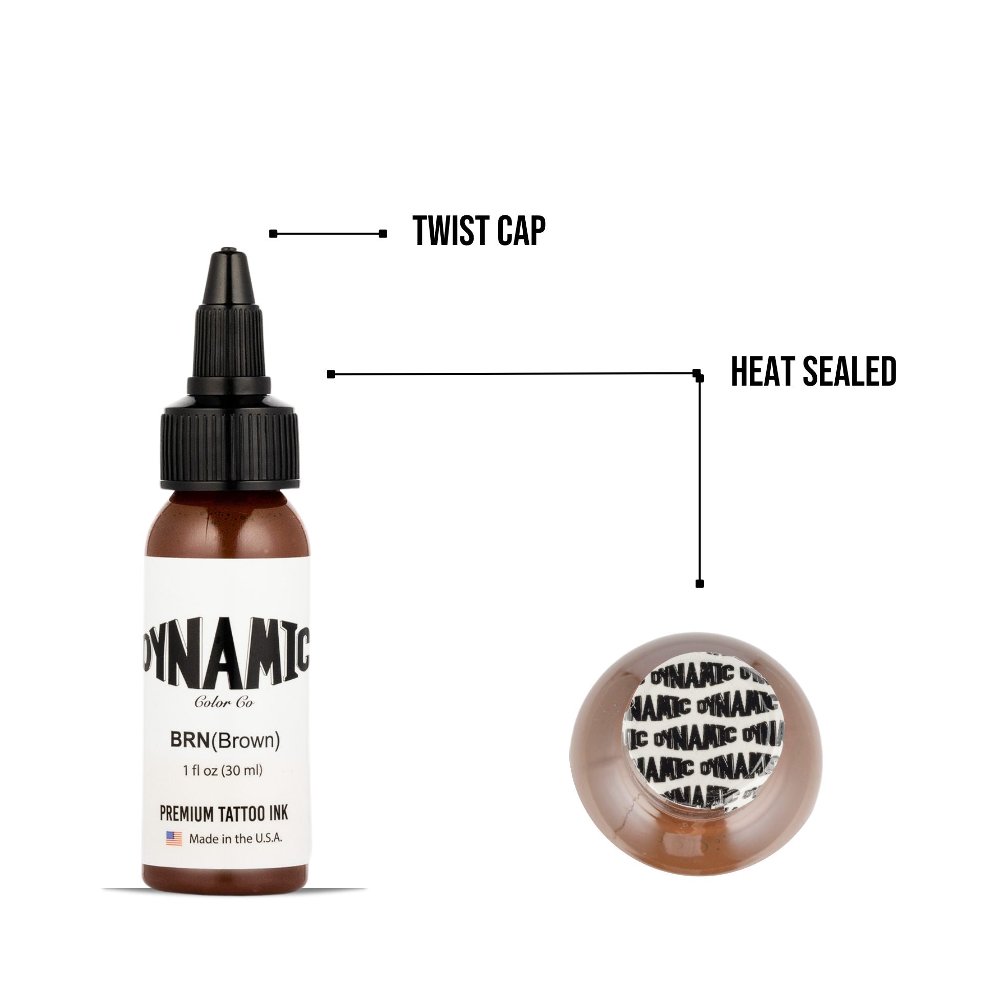 Add contrast and warmth to your next piece with Dynamic Color Brown Tattoo Ink. Inspired by natural brown clays found in the earth, this burnt umber shade is rich in high-quality pigment. Formulated with an unrivaled flow rate, the Dynamic Color Brown Tattoo Ink absorbs into the skin on the first shot for an unbeatable blend between colors.