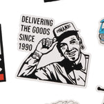 1 All-weather vinyl sticker for tagging your favorite things with Dynamic. This sticker is from our Bizarro Clip Art Series and features our Milk Man. He's quite the ladies' man, so hide your wife or girl. - We like our ink like we like our coffee. See the sizing chart for scale.