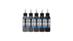 Be on the lookout for one of the baddest collections of grey on the market. The 4 oz. Fusion BOLO Grey Signature Tattoo Ink Set is a five-bottle collection round-up of Fusion's smoothest grey offerings including Formula XL, L, M, D, and XD.