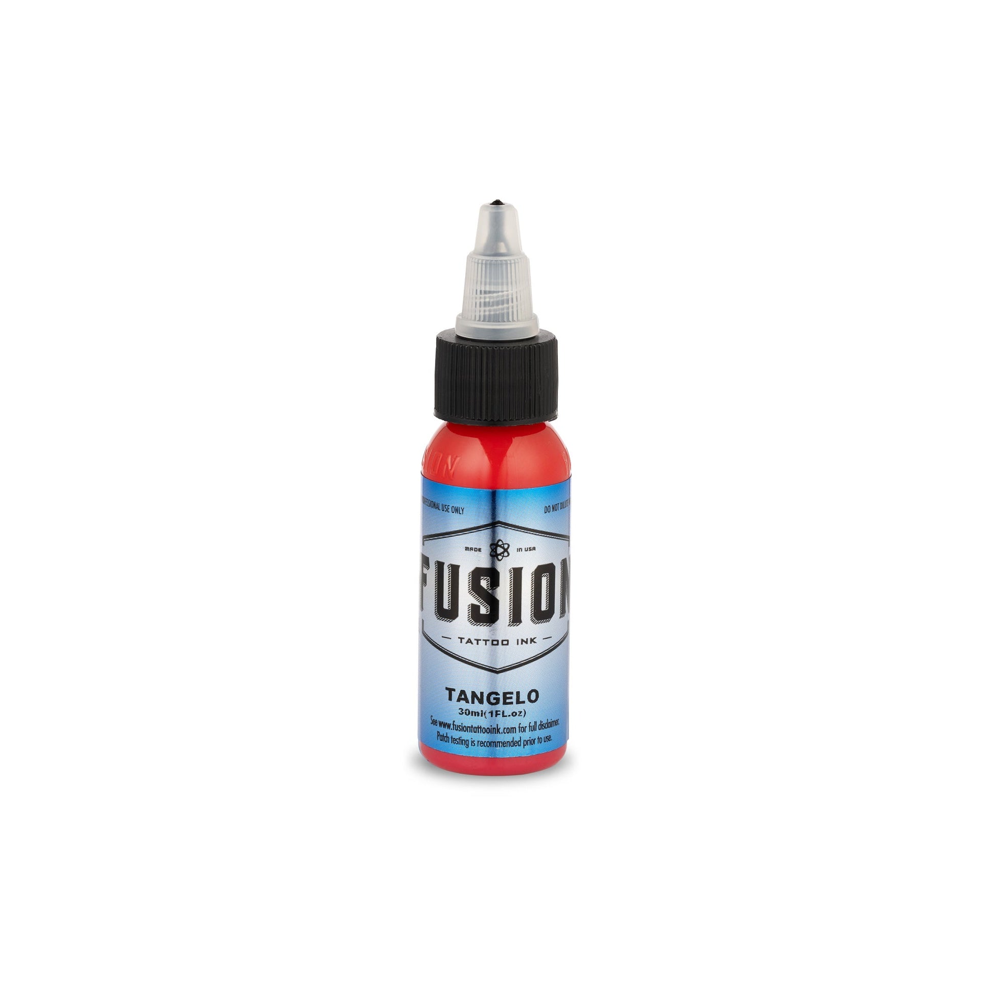 It takes two to Tangelo. And those two hues are a pinkish-orange blend. This warm light compilation has a red lean. Although light, 1 oz. Fusion Tangelo Tattoo Ink goes on super solid and is perfect for bridging the gap between other shades of red.