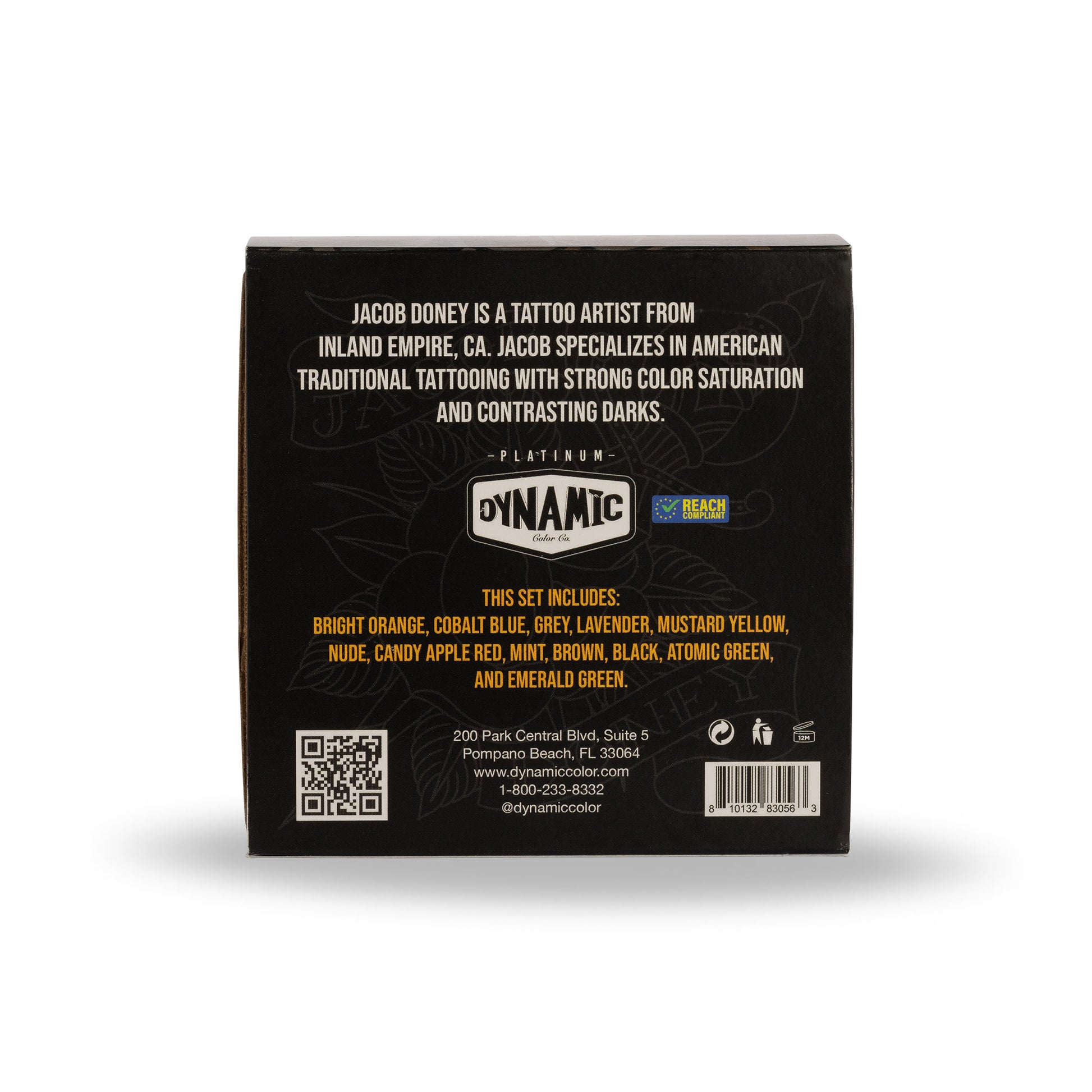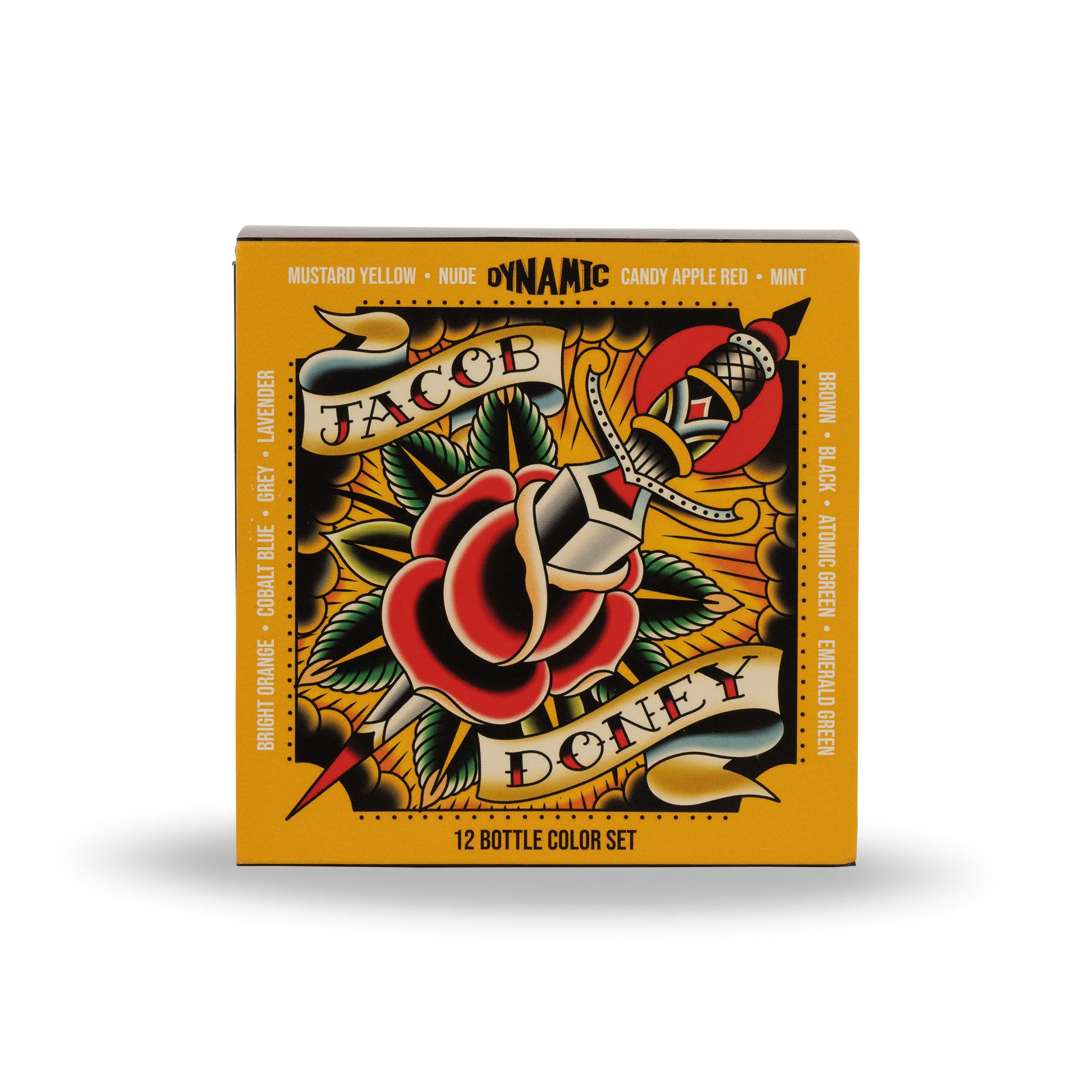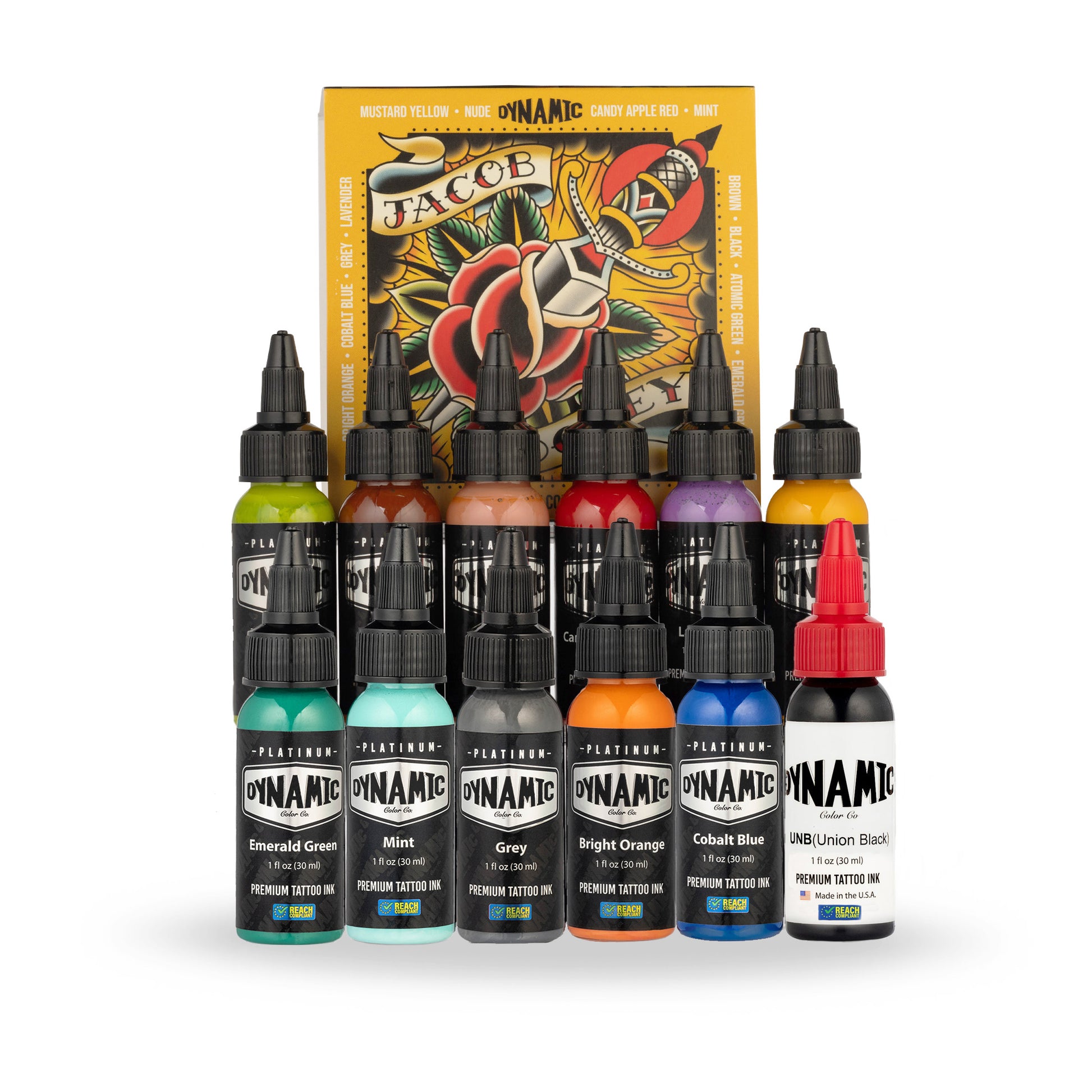 Experience the essence of timeless tattoo artistry with the Jacob Doney Dynamic Platinum 1oz Color Set by acclaimed artist Jacob Doney. Hailing from the vibrant locale of the Inland Empire, CA, Jacob brings his expertise in American traditional tattooing to every hue in this meticulously crafted collection. Each shade boasts unparalleled color saturation, ensuring your designs exude vibrancy and depth. With a keen eye for contrasting darks, Jacob's palette offers endless possibilities for creating bold and striking tattoos that stand the test of time. Elevate your artistic vision and capture the spirit of tradition with the Jacob Doney Tattoo Ink Color Set.