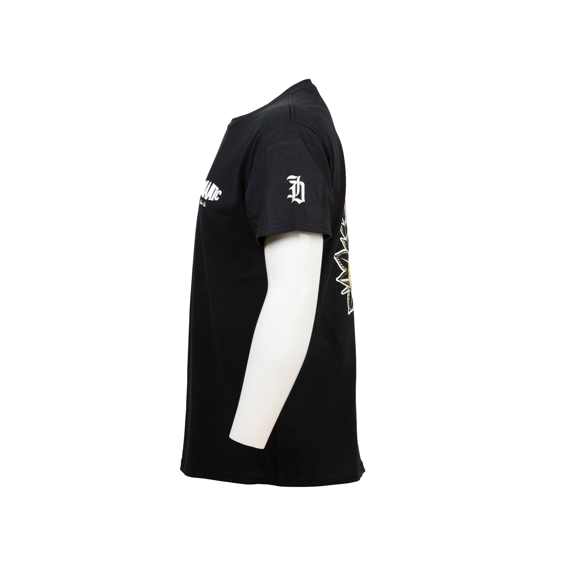 Esta camisa apresenta uma colaboração com o artista do sul da Califórnia, Jacob Doney, e exibe sua versão tradicional do punk rock na garrafa Dynamic Black. Esta camisa também exibe um hit de manga inglês antigo do JD.