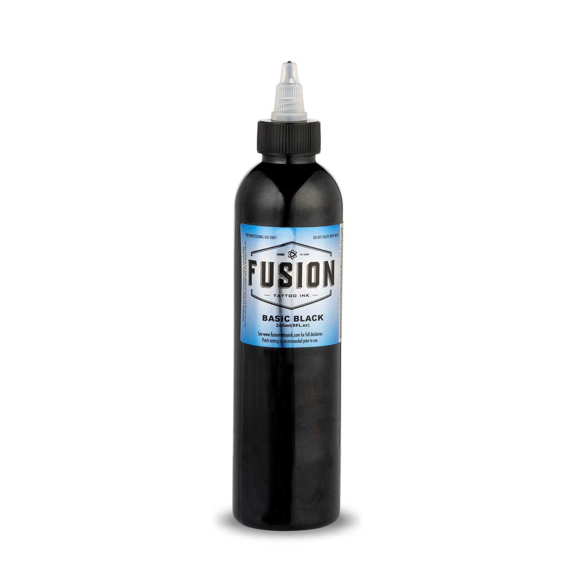 Super-size this very basic black tattoo ink. Enjoy even more of a good thing with 8 oz. Fusion Basic Black Tattoo Ink. This is a thinner iteration of black to be used for outlining and darkening tones.