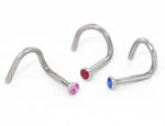 Bezel Set: 1.5mm gem set in a 2mm round Flat Back Head surgical steel nose screw. The nose screw has an inner diameter of 7mm.