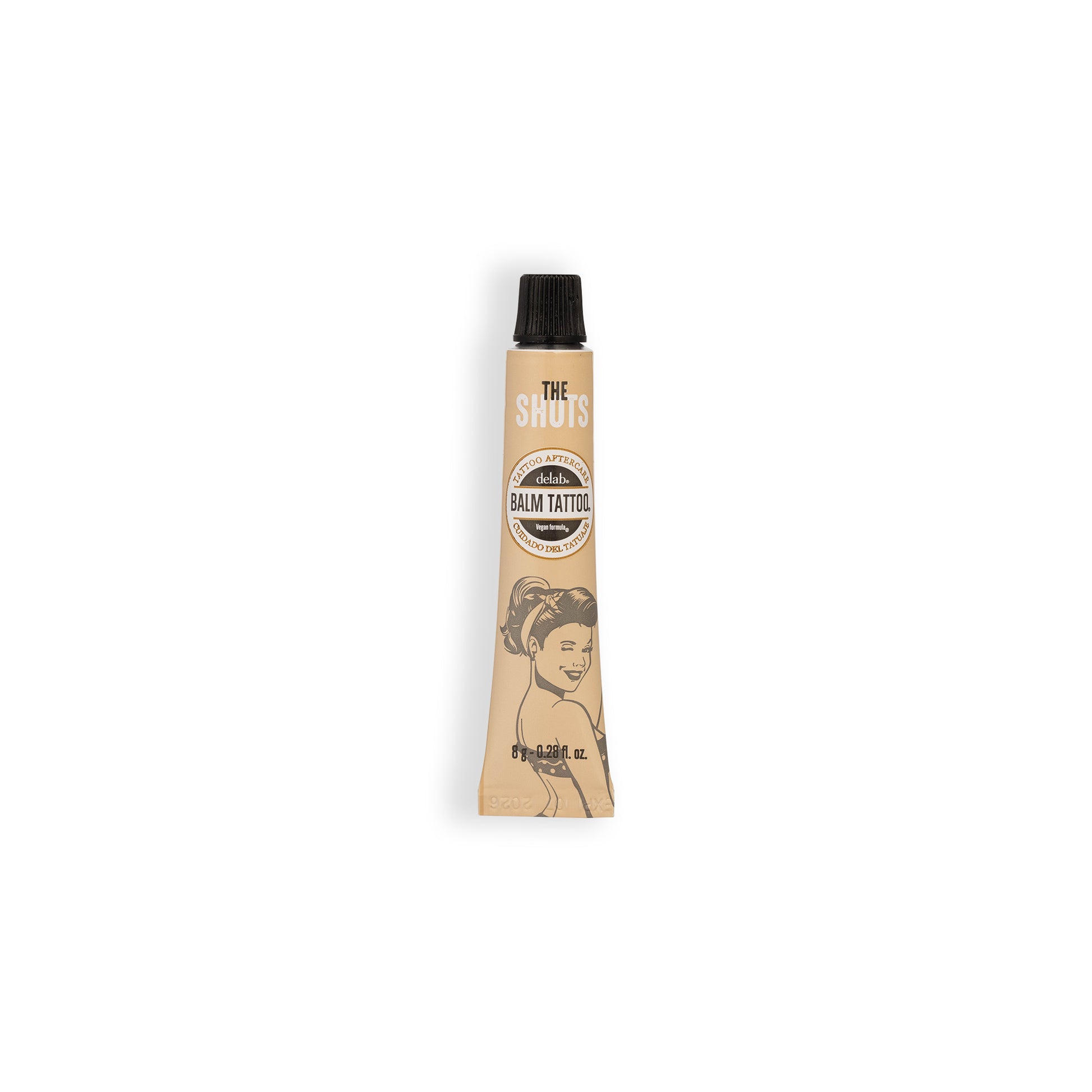 100% Vegan tattoo balm in 8g tubes (SHOTS), specially designed for the care of small tattoos and a perfect size to take anywhere with you.